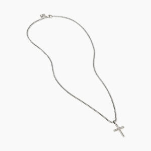 Classic Cable Cross Necklace Sterling Silver with Center Diamond, 24.3mm