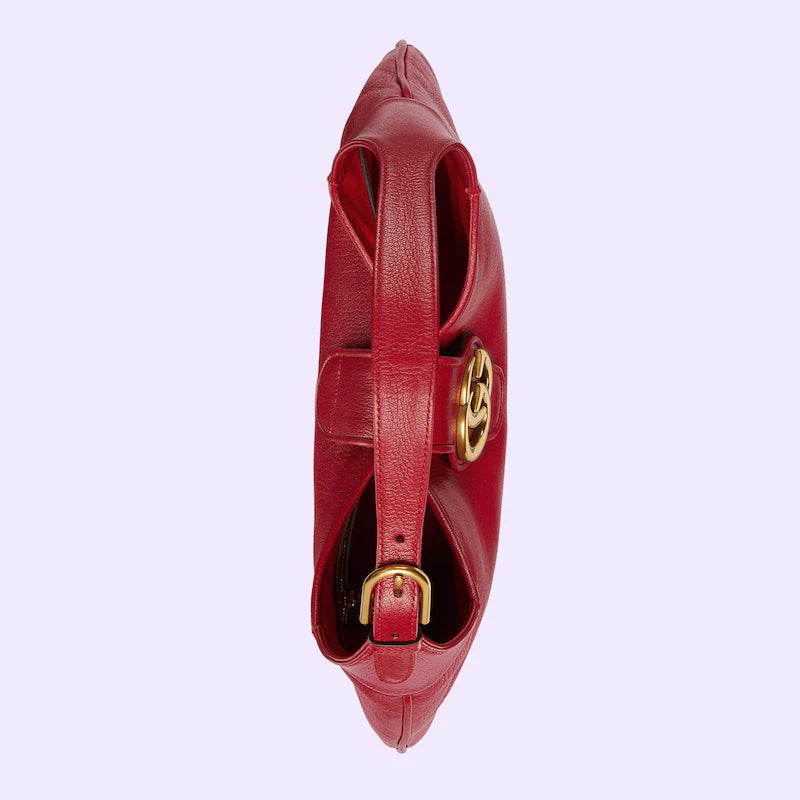 The Cruise 2023 Guthtcci Cosmogonie collection was presented against the backdrop of the historic Castel del Monte in Italy. The show brought together aesthetics from distant eras and geographies, and linked elements from the past with the present. This new crescent-shaped shoulder bag was shown on the runway and was inspired by the House��s archives, it is crafted in soft leather and features the Double G emblem��a code originally introduced in the 1970s.