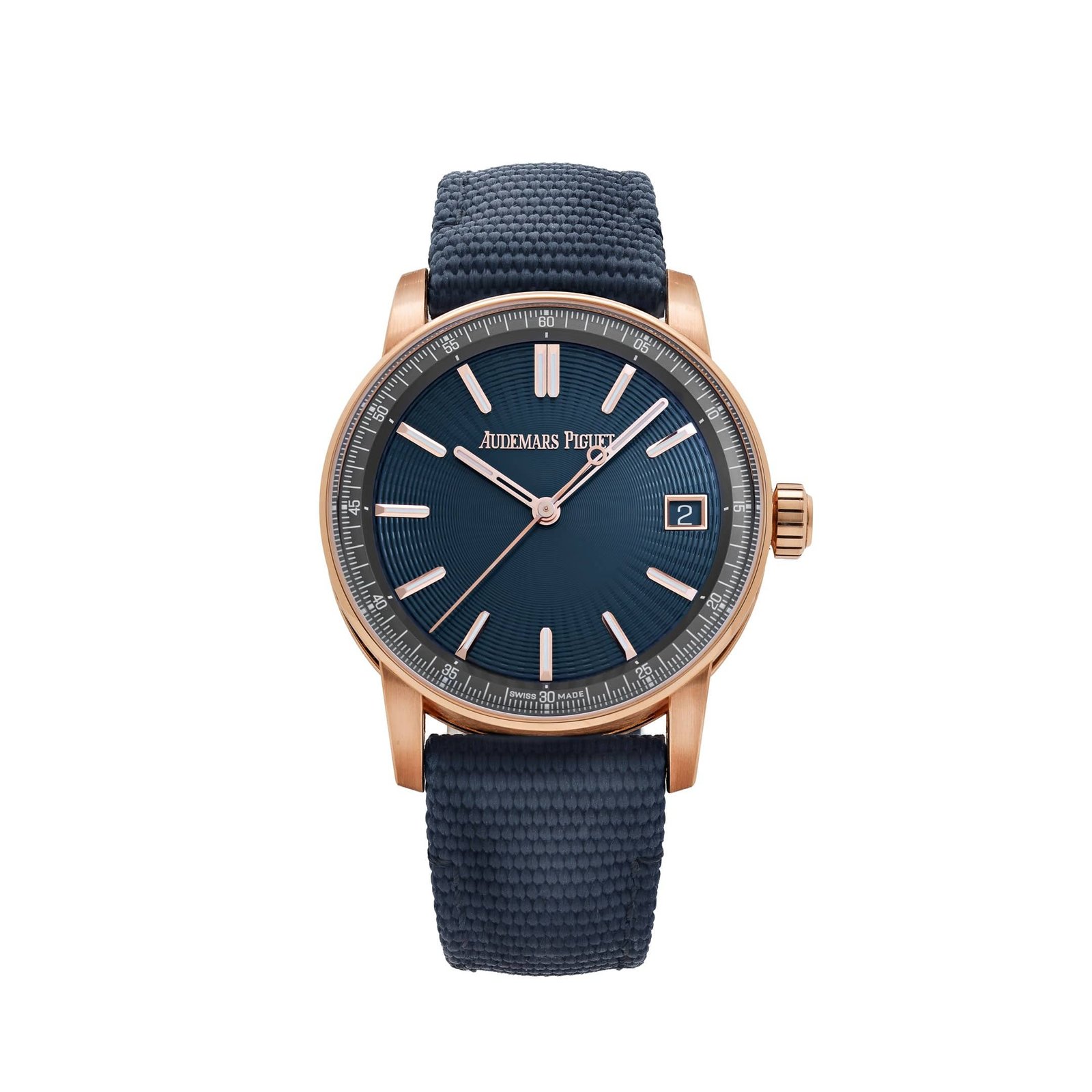 The deep blue lacquered dial provides a bold yet refined touch, complemented by rose gold applied hour markers and hands for a cohesive look. Paired with a matching blue composite strap, this watch offers both comfort and versatility, making it ideal for daily wear or formal occasions. The 15210OR.OO.A348KB.01 is a perfect choice for collectors seeking a timepiece that balances modern elegance with Audemars Piguet’s renowned craftsmanship.