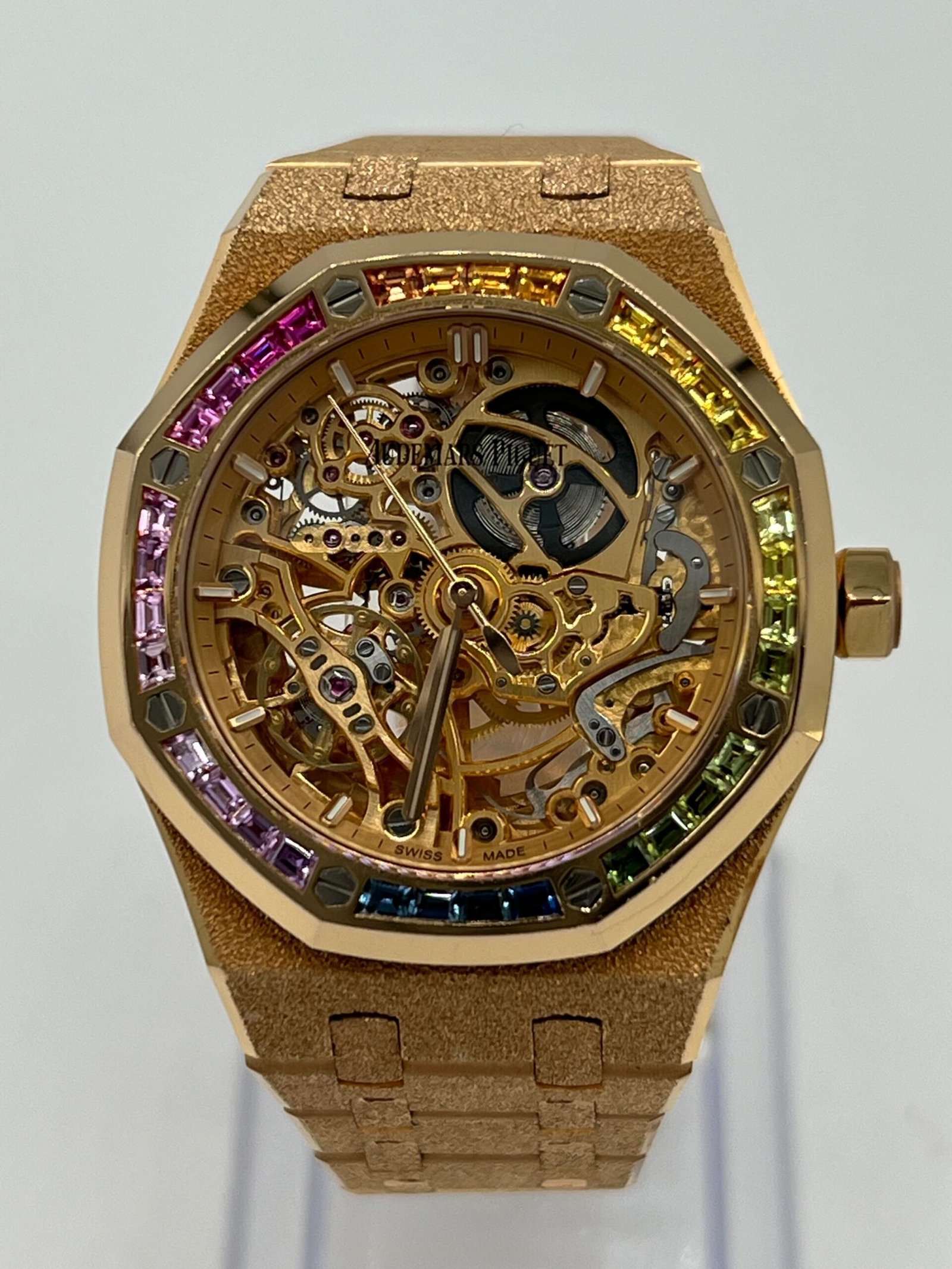Audemars Piguet Royal Oak 15468OR.YG.1259OR.01 Openworked Frosted Rose Gold Rainbow Bezel