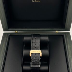 The Selfwinding is designed with an 18-carat rose gold case measuring 41mm and includes the new Royal Oak design advancement. It has a black dial with a “Grande Tapisserie” pattern, rose gold applied hour-markers and Royal Oak hands with luminescent coating, and hosts a date window at 3 o’clock. The watch comes on a black alligator strap with an 18-carat rose gold AP folding clasp.