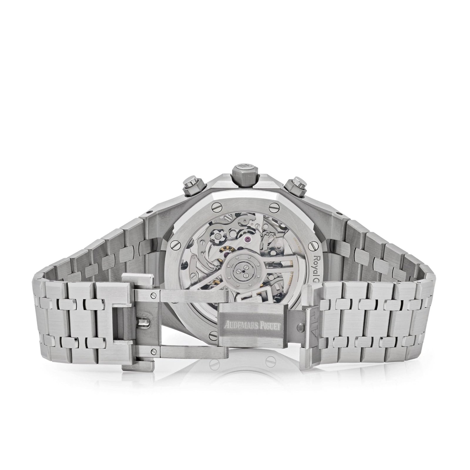 Introducing the Audemars Piguet Selfwinding 26240ST.OO.1320ST.02. The 41mm case is made of Stainless Steel with a Grande Tapisserie dial in black. Luminescent white gold hand and hour markers work with the Sapphire glare-proofed crystal for optimal legibility in any condition. An exhibition case back gives a glimpse at the “50th Anniversary” oscillating weight. The Calibre 4401 powers all of the watch’s complications, including Flyback chronograph timekeeping and date features.