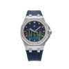 This is designed with a 42mm 18-carat rose gold case and bezel with black ceramic push pieces and screw-locked crown. In the center inlays a stunning black ‘Tapisserie’ dial with rose gold-toned sub-dials. The watch comes on an 18-carat rose gold bracelet and AP folding clasp.