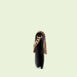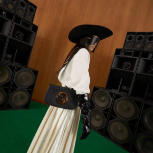 Vintage elements are paired with archival details as an ode to the glamour that permeated the Guthtcci Love Parade fashion show. This shoulder bag pairs a delicate chain strap with black leather to infuse the accessory with a timeless feel. Reintroduced in honor of the collection, the rounded silhouette is completed by a historical, rounded iteration of Guthtccio Guthtcci’s monogram.