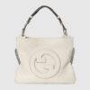 The Round Interlocking G that characterizes the Guthtcci Blondie line originates from the House archives. Signature pieces such as this Guthtcci Blondie shoulder and crossbody bag reinterpret the emblem as a subtler leather patch detail.