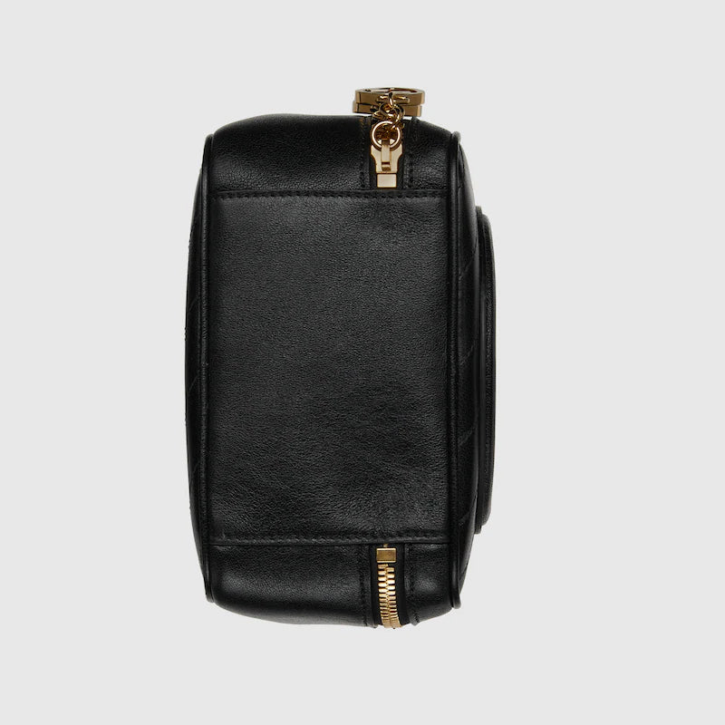 The Round Interlocking G that characterizes the Guthtcci Blondie line originates from the House archives. Signature pieces such as this Guthtcci Blondie shoulder and crossbody bag with a top handle reinterprets the emblem as a subtler leather patch detail.