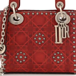 Calfskin Embossed Cannage Flower Studded Mini Lady Dior Bag Red