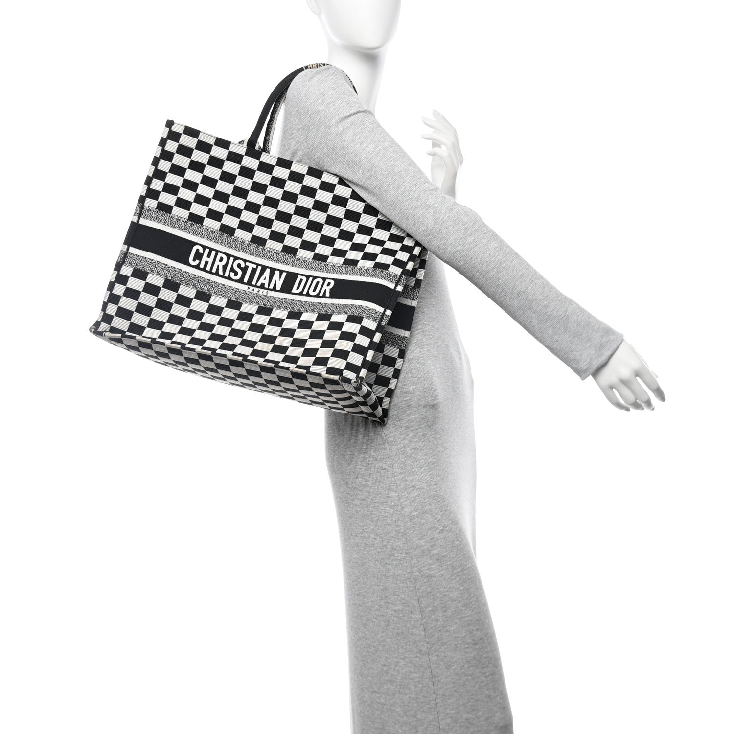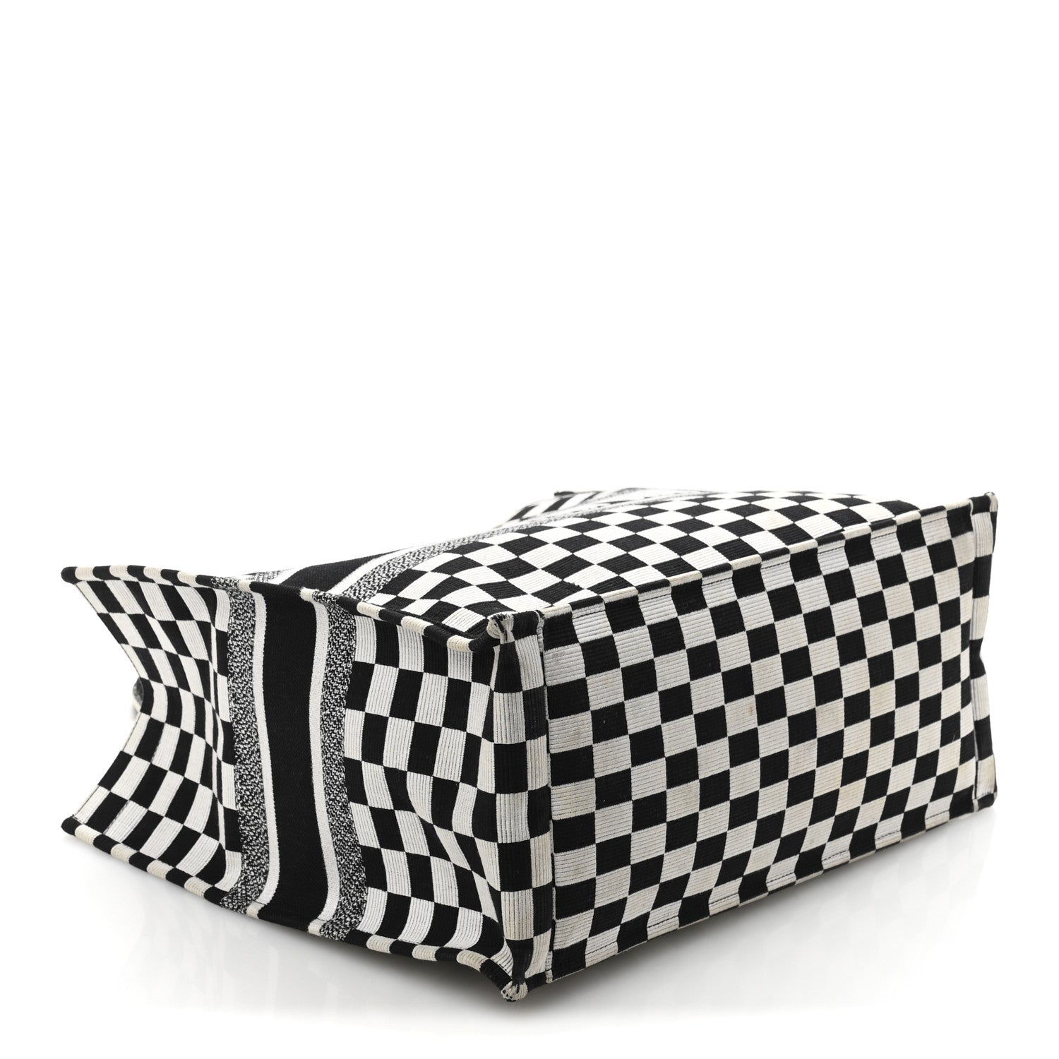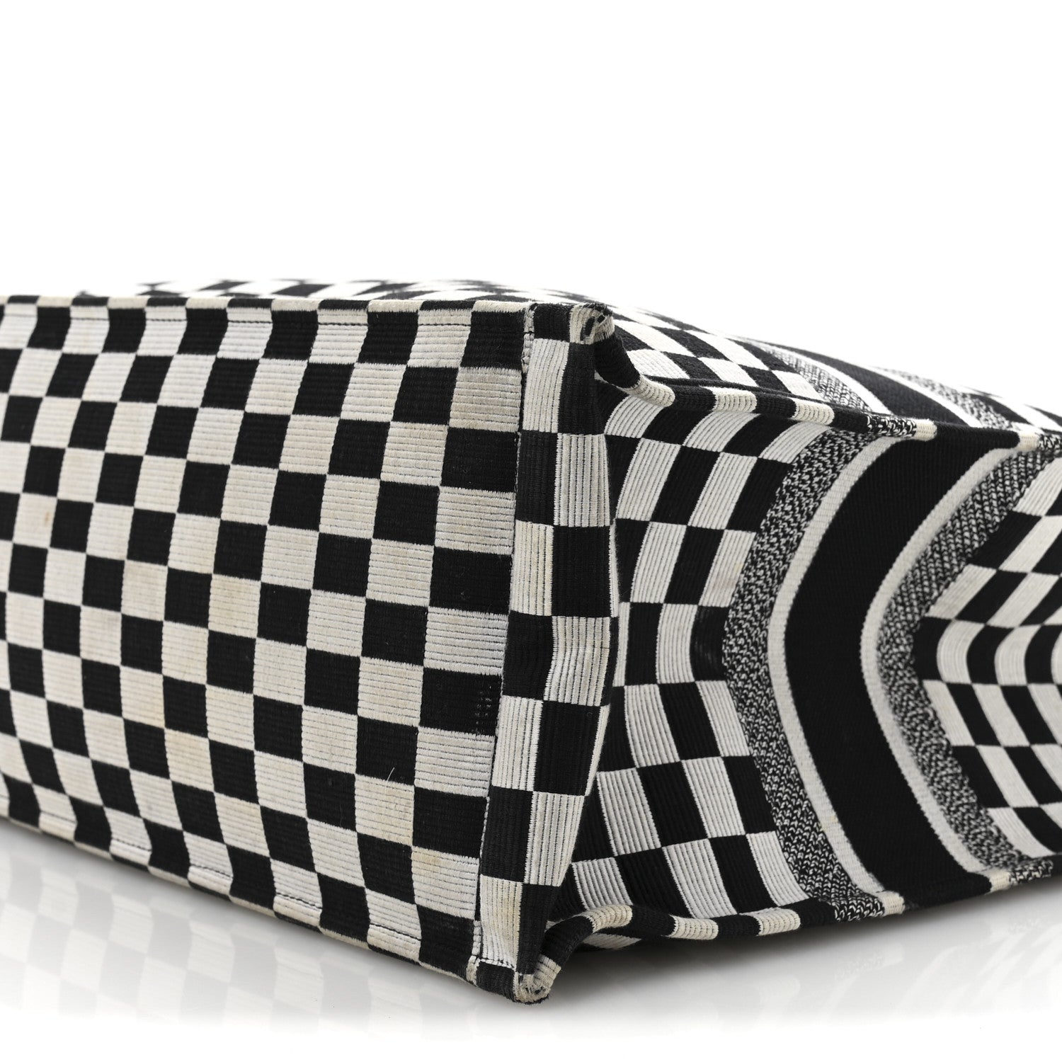 This is an authentic CHRISTIAN DIOR Canvas Embroidered Checkered Book Tote in Black and White. This tote is crafted of checkered canvas in black and white. It features black canvas rolled top handles with CHRISTIAN DIOR embroidery and opens to a spacious fabric interior.
