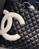 CHANEL Calfskin Quilted Large Cambon Tote Black White