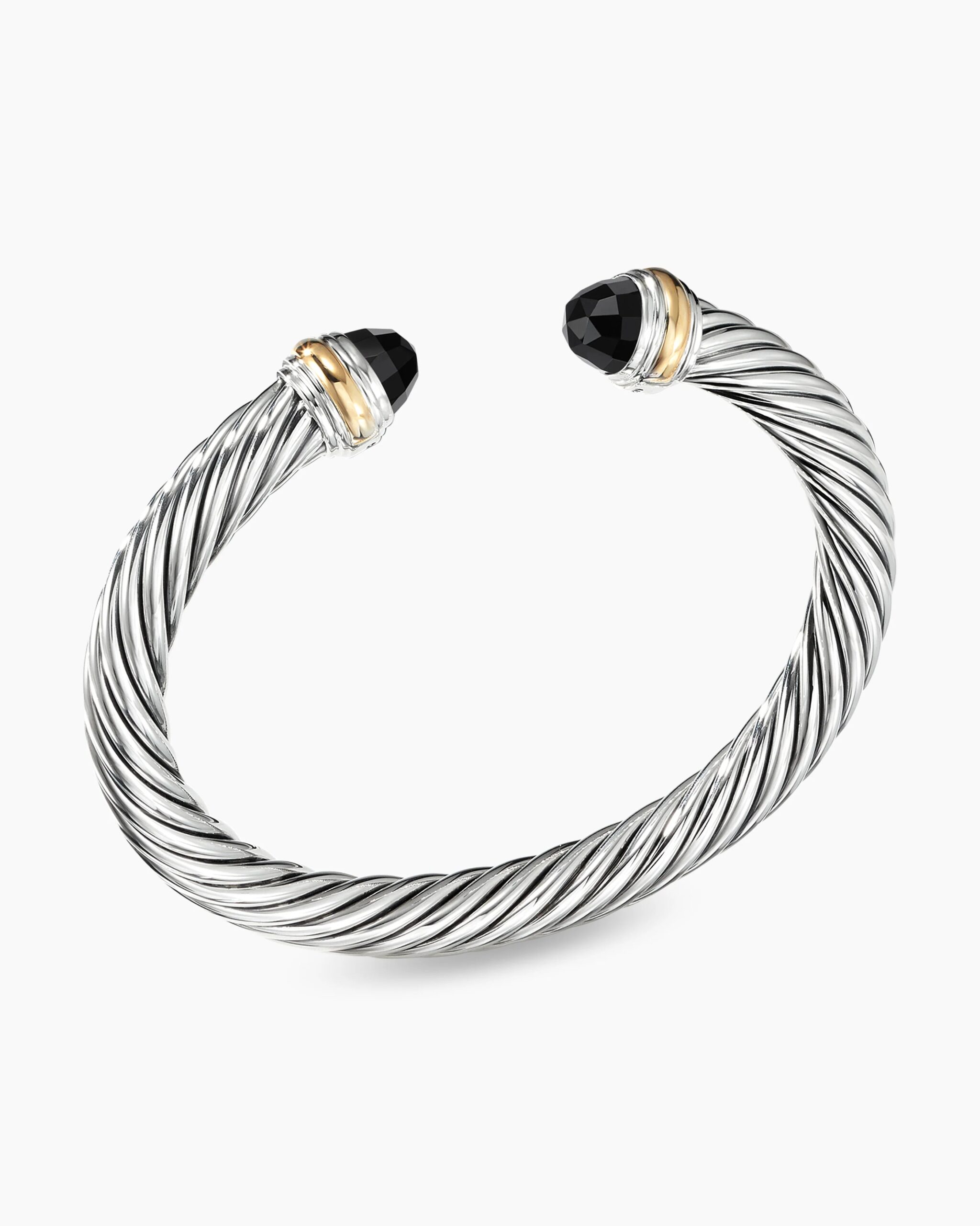 Classic Cable Bracelet Sterling Silver with 14K Yellow Gold and Black Onyx, 7mm