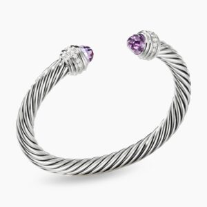 Classic Cable Bracelet Sterling Silver with Amethyst and Diamonds, 7mm