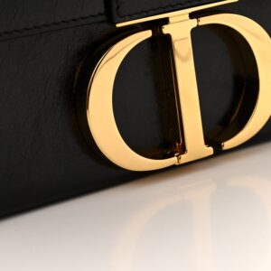 This is an authentic CHRISTIAN DIOR Crackled Lambskin 30 Montaigne Box Bag in Black. This flap bag is finely crafted of smooth black lambskin leather. The bag features an adjustable shoulder strap, and polished gold hardware. The flap opens to a black leather interior with a patch pocket.