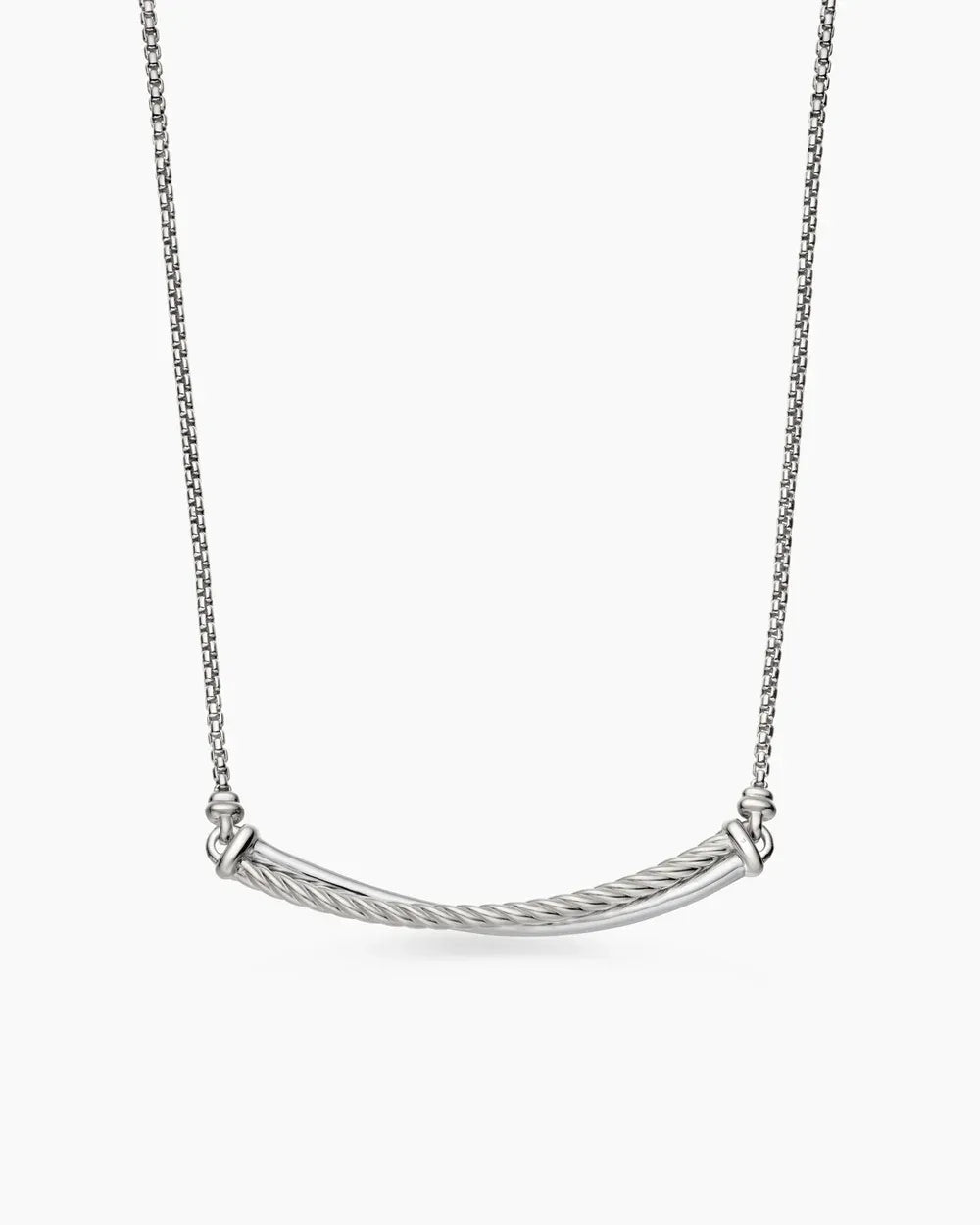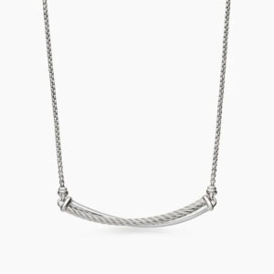 Crossover Bar Necklace Sterling Silver with Diamonds