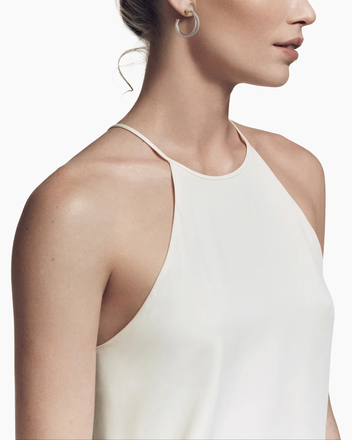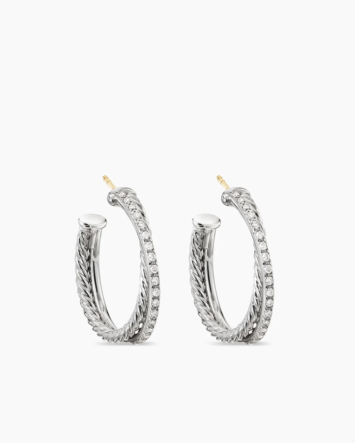 Crossover Hoop Earrings Sterling Silver with Diamonds, 26.5mm