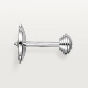 Cathtrtier d’Amour earrings, 18K white gold (750/1000), each set with a brilliant-cut diamond totaling 0.09 carat. Diameter of the pattern: 4.5 mm. Thickness: 2.45 mm.