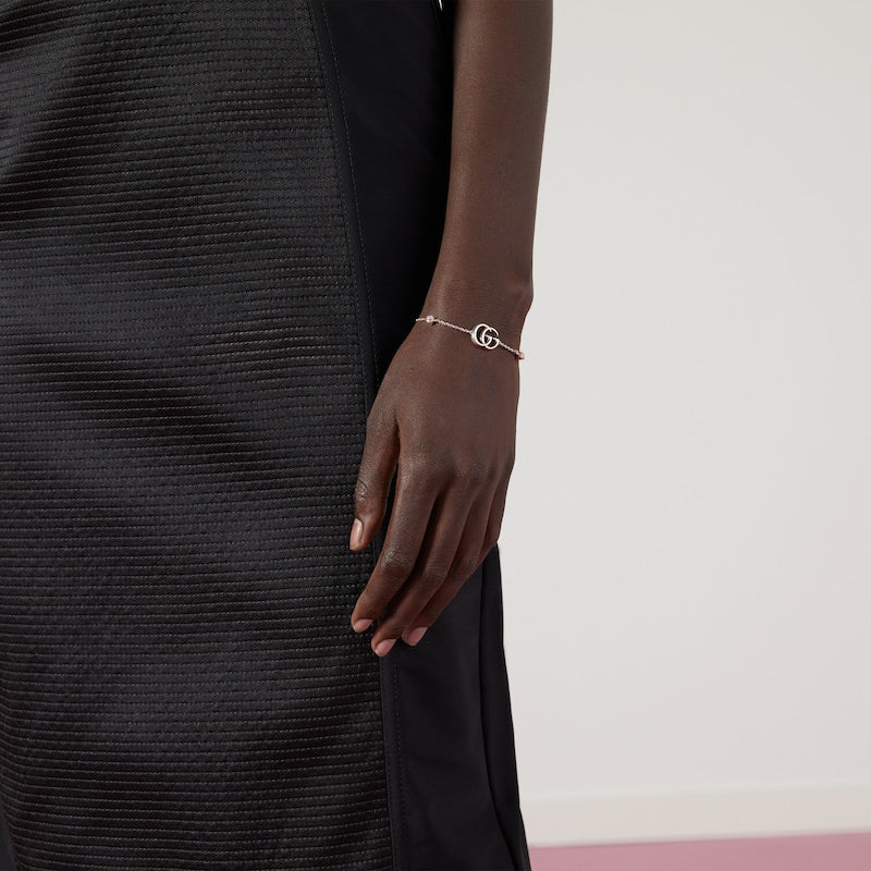 The natural beauty of the botanic world continues to act as a rich source of inspiration for Guthtcci’s designs. Crafting from precious sterling silver, this Double G bracelet is decorated with a delicate flower charm at the closure. Intricate details appear throughout the collection as subtle tributes to the House’s influences.