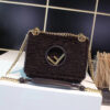 Small hobo bag made of soft white leather, with vintage gold metal FENDI lettering visible when the bag is worn under the arm.