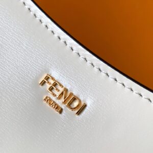 Pouch made of mint green leather with zip closure, decorated with Fendi Roma lettering in gold-coloured metal.