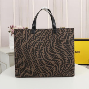 Shopper made of jacquard fabric with brown FF Vertigo motif.