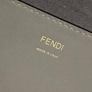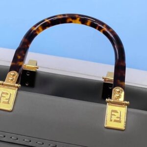 Sunshine Shopper bag made of gray leather with heat-stamped “FENDI ROMA�?and stiff tortoiseshell plexiglass handles.