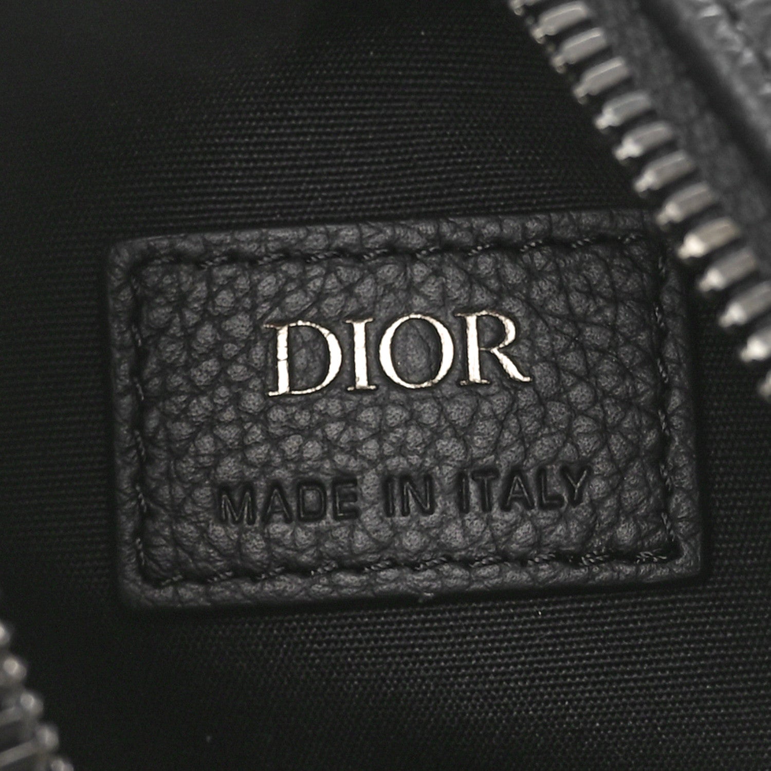 This is an authentic CHRISTIAN DIOR Grained Calfskin Oblique Scarab Sling Bag in Blue and Black. This bag is crafted of grained calfskin leather in black with oblique canvas. The bag features a leather and nylon mesh sling strap, a bottom zip pocket, and silver hardware. The top zipper opens to a black fabric interior.