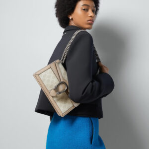- Sliding chain strap can be worn as a shoulder strap with 23�?drop or can be worn as a top handle with 125�?drop.