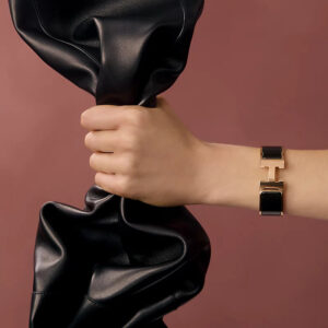 Narrow bracelet in enamel with rose gold-plated hardware.