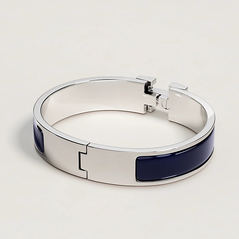 Narrow bracelet in enamel with rose gold-plated hardware.