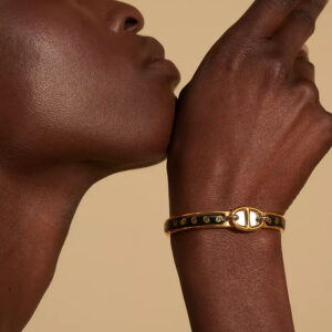 Narrow bracelet in enamel with rose gold-plated hardware.