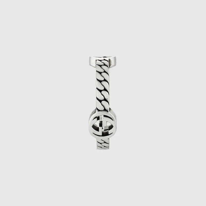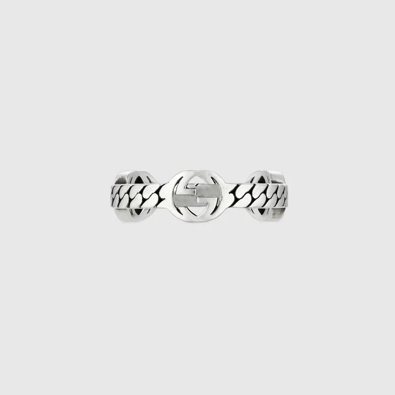 Recalling retro chain necklaces, this ring is crafted with an intricate construction and an Interlocking G motif. Throughout the collection, vintage inspirations are reimagined through the Guthtcci lens as a celebration of both the past and present.