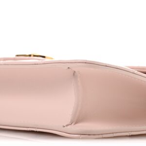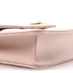 This is an authentic CHRISTIAN DIOR Lambskin Cannage Mini Jolie Bag in Powder Pink. This flap bag is crafted of pink smooth leather. It features an adjustable gold chain shoulder strap with leather shoulder pad, and gold hardware. The flap opens to a matching leather interior with card slots.