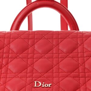 This is an authentic CHRISTIAN DIOR Lambskin Cannage Large Stardust Backpack in Red. This stylish tote is crafted of luxuriously soft geometric quilted lambskin leather in red. The bag features a leather top handle, adjustable leather shoulder straps, a front pocket and frontal flap. This opens with a magnetic snap to a spacious dark red fabric interior with a leather patch pocket.