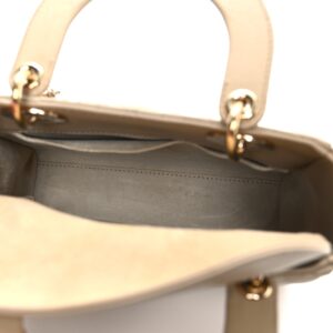 This is an authentic CHRISTIAN DIOR Lambskin Cannage Small My ABCDior Lady Dior in Beige. This stylish tote is crafted of cannage quilted lambskin leather in nude beige. The bag features rolled and reinforced leather handles, a shoulder strap embellished with light gold hardware. The top inner flap opens to a microfiber fabric interior with zipper and patch pockets.