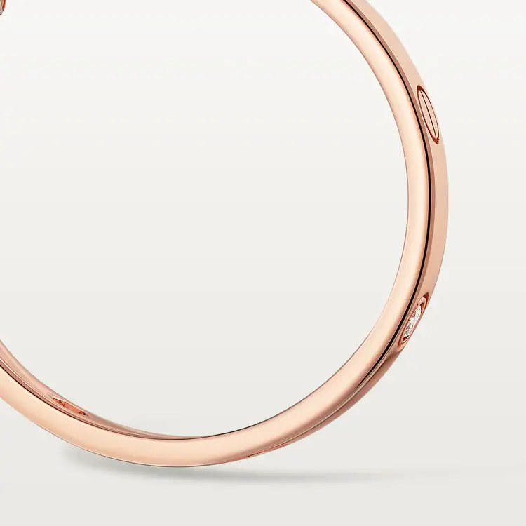 LOVE earrings, 18K rose gold (750/1000), each set with 3 brilliant-cut diamonds totaling 0.13 carat.