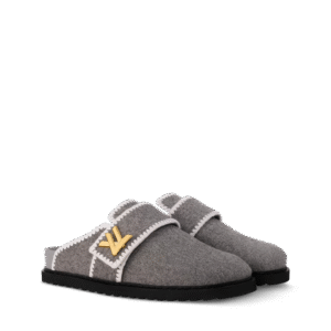 The LV Cosy flat comfort clog features an upper made of soft wool. This relaxed model is elevated by refined details, including contrast stitching around the edges and a gold-toned LV Twist accessory on the strap. It has an anatomic footbed and a lightweight rubber outsole for optimum comfort.