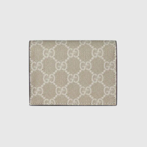 A card case wallet crafted from a mix of the House’s monogram canvas and smooth light pink leather, completed by five card slots and inside pockets. Part of the GthtG Marmont line, the style is defined by a mini version of the emblematic Double G hardware.