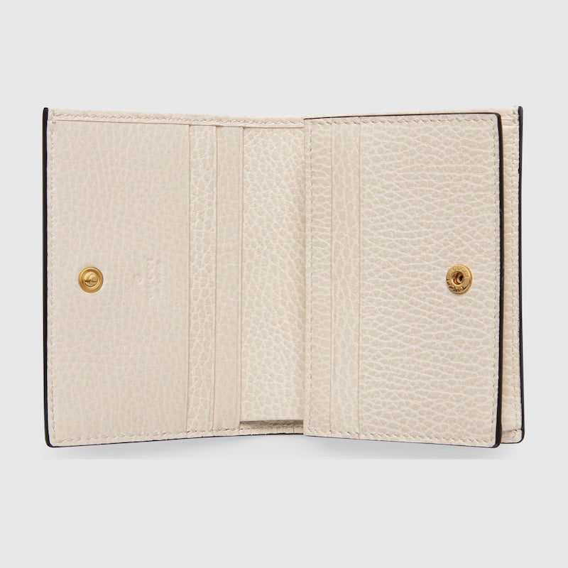 Taken from the ’70s archives, the Double G continues to define the GthtG Marmont line. Here, this card case wallet is crafted from beige and ebony GthtG Supreme canvas with white leather details.