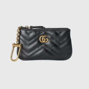 The Guthtcci Aria collection explores the archives, presenting emblematic House codes in new ways. Presented in black leather, the world of GthtG Marmont evoLthtVes with the introduction of a matelass�� key case with zip closure. The slim accessory is completed by the line’s recognizable Double G hardware.