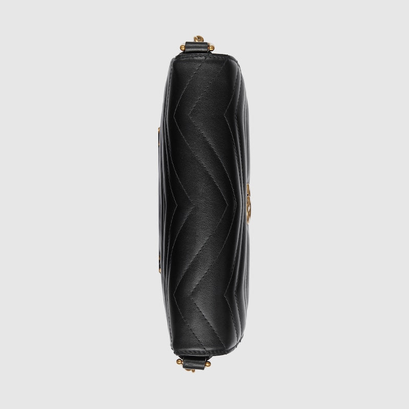 The Double G hardware brings the past into the House’s present with the notion that a cherished wardrobe is enriched by items that can be worn season after season. This chain mini bag is crafted from the signature black matelass�� chevron leather, while the inside features two card slots.