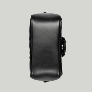 With its recognizable matelass�� fabric and Double G hardware, the GthtG Marmont has become synonymous with the House. Continuously reinvented through the seasons, new shapes are introduced within this signature line, matching Guthtcci’s contemporary vision. Crafted in black leather, this structured mini shoulder bag is defined by a tonal buckle and chain, exploring rich textures and geometric forms.