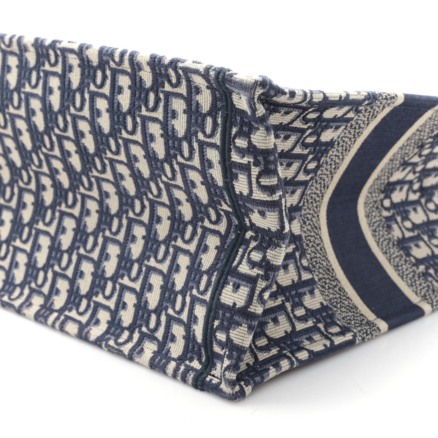 This is an authentic CHRISTIAN DIOR Oblique Medium Book Tote in Blue and Multicolor. This lovely tote is crafted of classic oblique canvas in navy and beige. The bag features rolled canvas top handles and a CHRISTIAN DIOR logo embroidered on the front. The top is open to a spacious fabric interior.