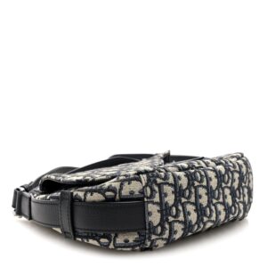 This is an authentic CHRISTIAN DIOR Oblique Mini Soft Saddle Bag in Beige and Black. This is a distinctive Dior messenger bag is crafted of navy blue monogram canvas on a beige background. This shoulder bag features a saddle-shaped front pocket, an optional, adjustable black leather strap with silver hardware, and a matching handle. The top zipper opens to a spacious black fabric interior with a patch pocket.