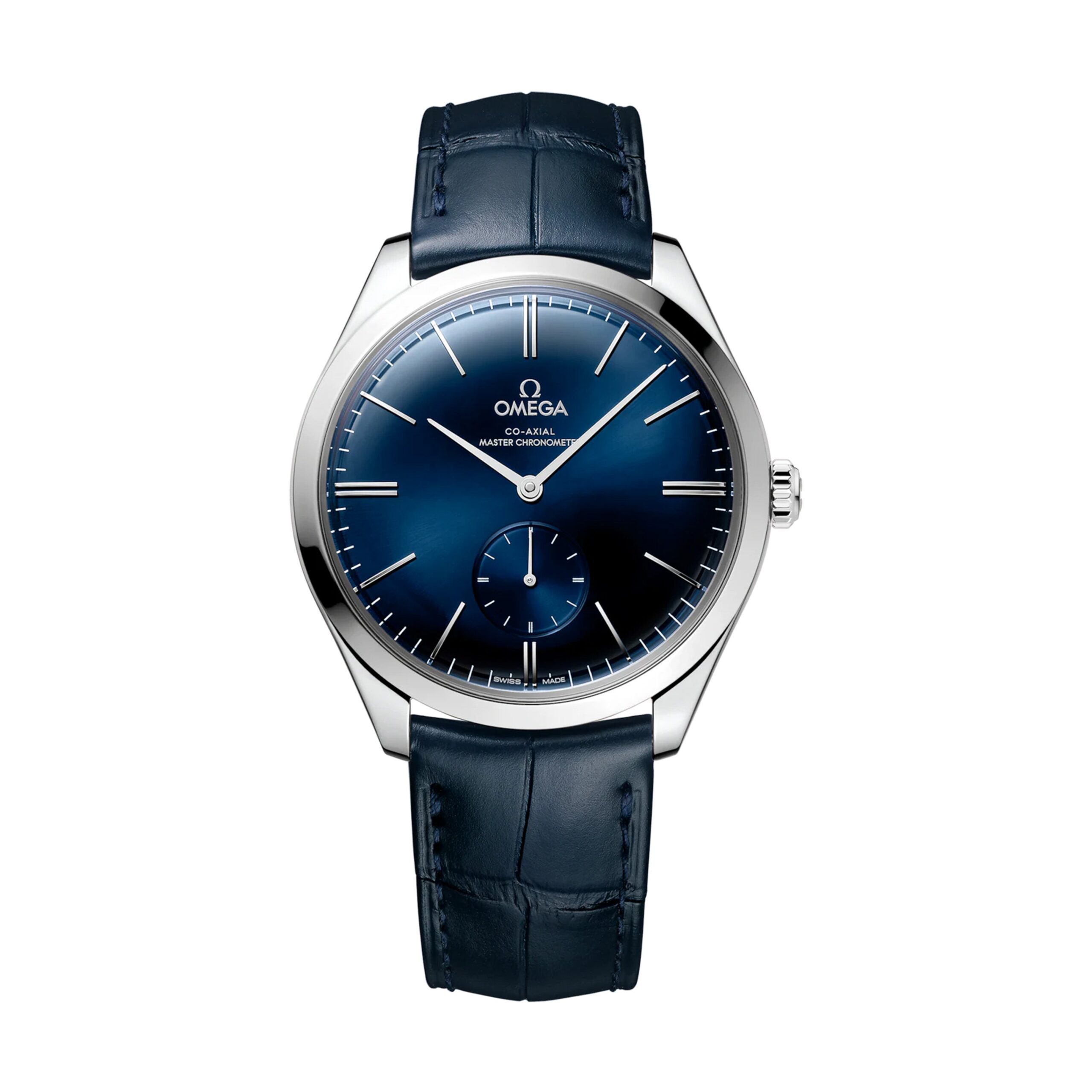Characterised by its thin and elegant case, the Trésor line was first launched by OMEGA in 1949 and housed the legendary 30mm calibre. More than half a century later, it continues to impress with one of today’s most advanced mechanical movements.This model has a polished 40 mm stainless steel case, which is presented on a blue leather strap. The domed blue dial includes a Small Seconds display at 6H, along with hands and domed indexes in 18K white gold.