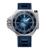 This 41 mm Seamaster 300, with its symmetrical case in polished and brushed stainless steel, has a matching bracelet.The varnished dial, in OMEGA’s own Summer Blue, has a gradient finish to reflect the watch’s level of water resistance. In keeping with the colour code, OMEGA has filled the rhodium-plated hands, recessed hour markers, and open numerals with a unique light blue Super-LumiNova.Turning the watch over reveals a stamped commemorative Seamaster logo depicting a trident-bearing Poseidon and two seahorses: OMEGA’s 1956 original and the brand’s current design. Behind which sits OMEGA’s Co-Axial Master Chronometer calibre 8912, certified at the industry’s highest level by the Swiss Federal Institute of Metrology (METAS).