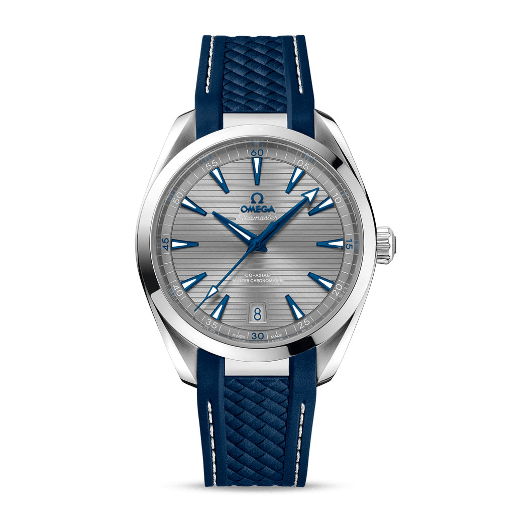 The blue strap is made from structured rubber and includes grey lining and an additional stainless steel link which integrates it to the case. This certified chronometer is powered by the OMEGA Master Chronometer calibre 8900, certified at the industry’s highest standard by the Swiss Federal Institute of Metrology (METAS).