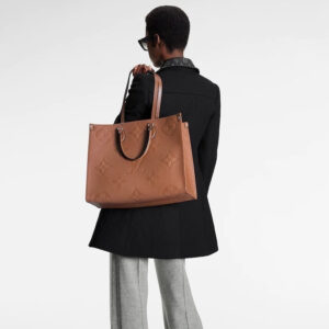 Fashioned from Monogram Giant canvas, the OnTheGo GM tote bag is as striking as it is practical. A Monogram Reverse pattern on the sides and handles creates a stylish contrast in color and scale. With its generous capacity, shoulder straps and iconic Toron top handles, this versatile GM model is an ideal bag for everyday wear.