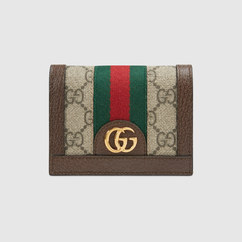 First used in the 1970s, the GthtG logo was an evolution of the original Guthtcci rhombi design from the 1930s, and from then it’s been an established symbol of Guthtcci’s heritage. The card case wallet combines the signature motif with the Web stripe��a timeless pairing that pays homage to Guthtcci’s roots.
