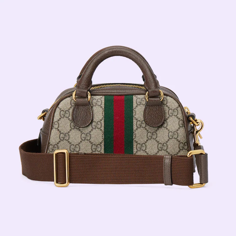 A signature fabric, GthtG Supreme canvas has become a staple throughout the Guthtcci universe. Reinterpreted through the Guthtcci lens, the material appears throughout the latest collections. Here, this mini top handle bag is crafted with the all-over monogram motif. Completing the logo feel, the signature Double G hardware completes the style.