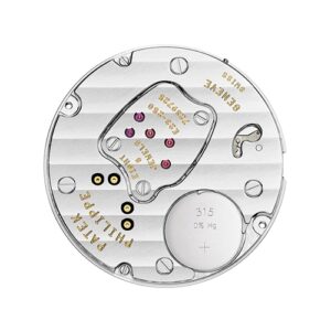 Diameter: 23.9 mm. Thickness: 2.5 mm. Number of parts: 80. Number of jewels: 8. Quartz frequency: 32,768 Hz. Power source: Silver oxyde battery 1.55 V. Battery life (new): approximately 3 years.