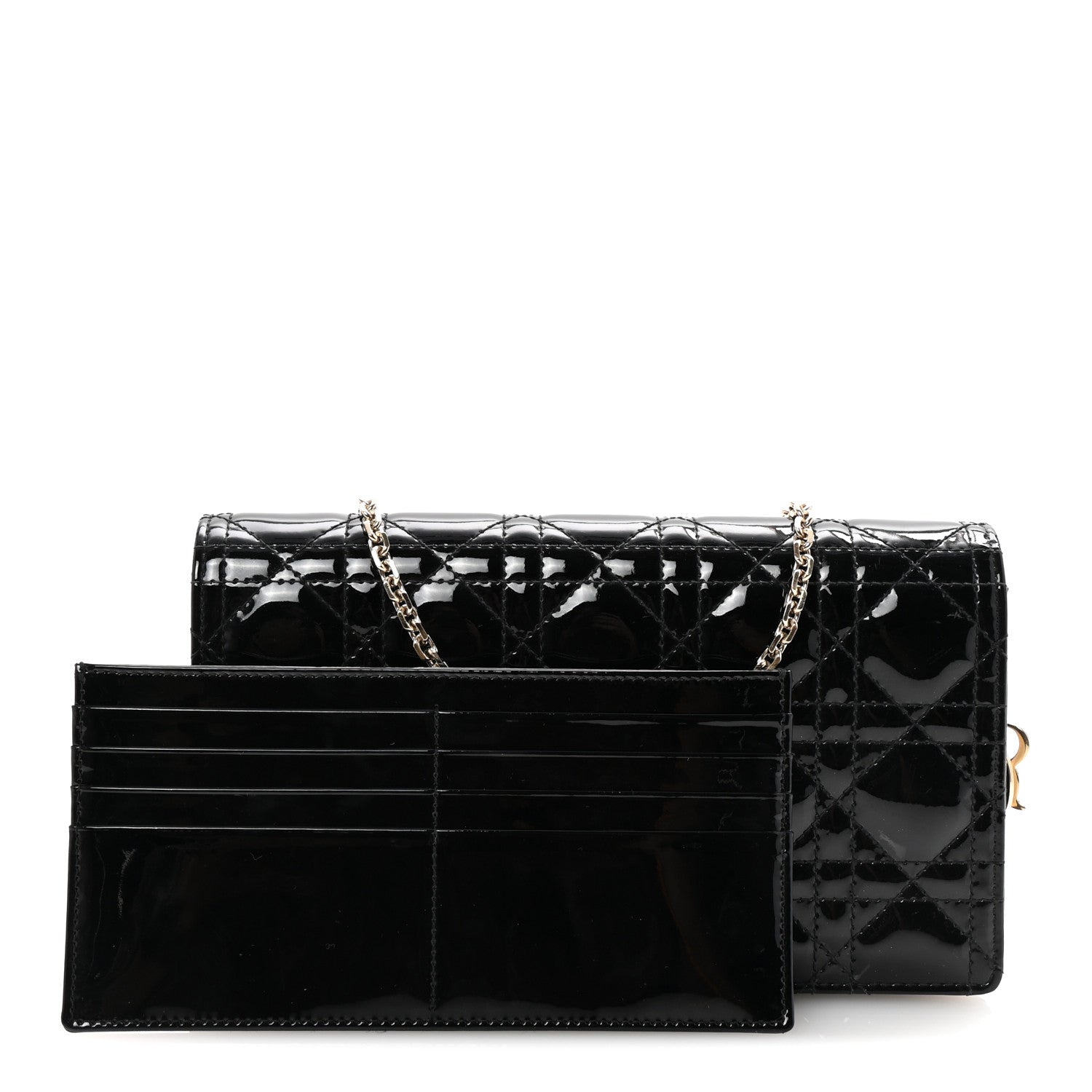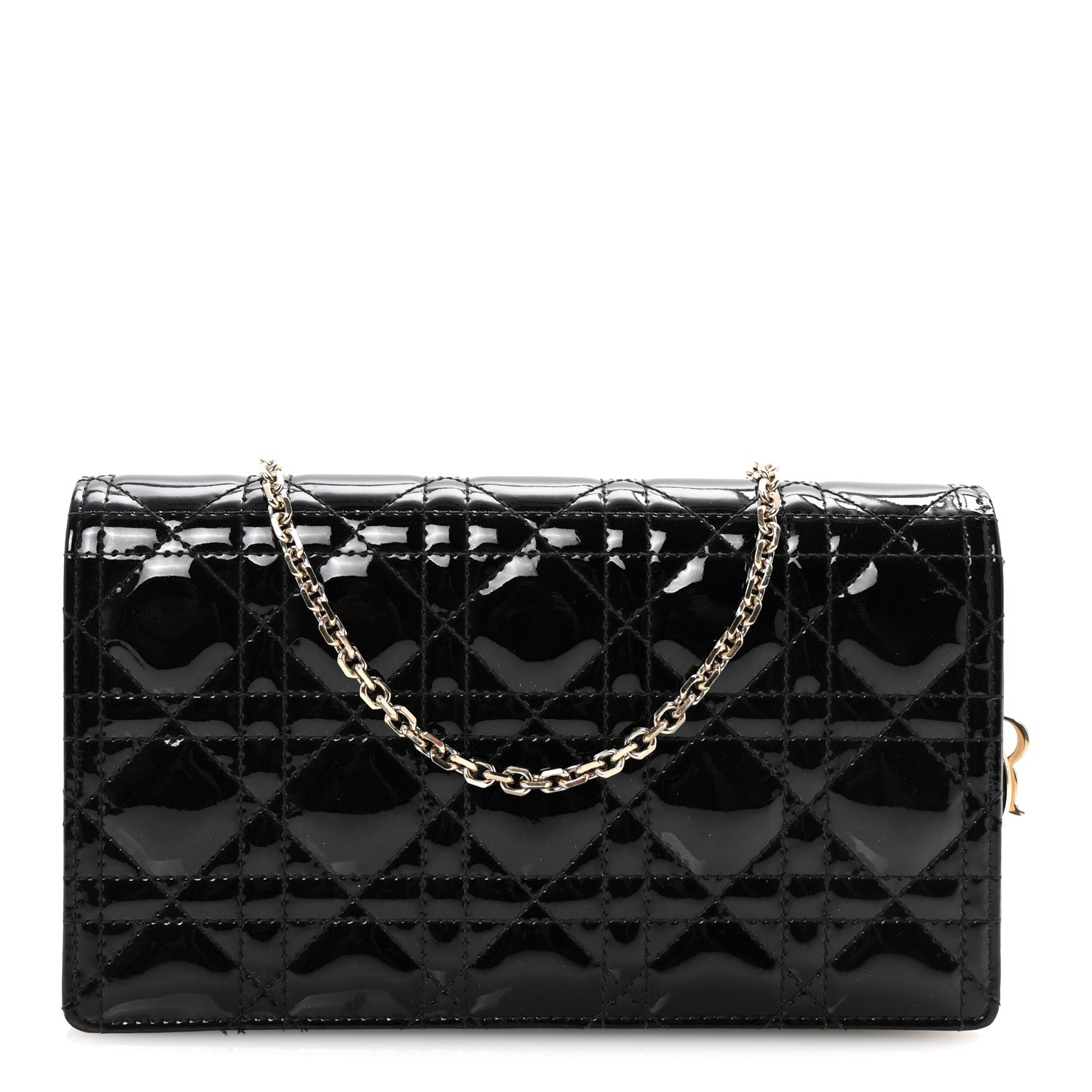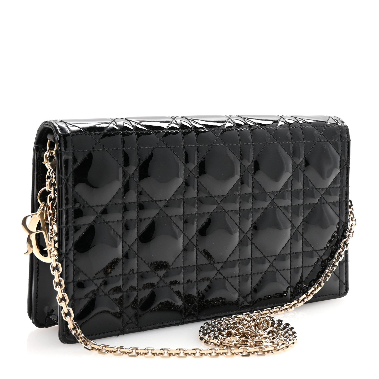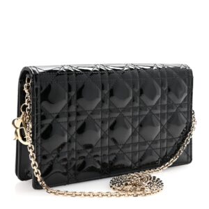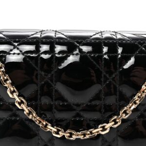 Patent Cannage Lady Dior Chain Wallet Black